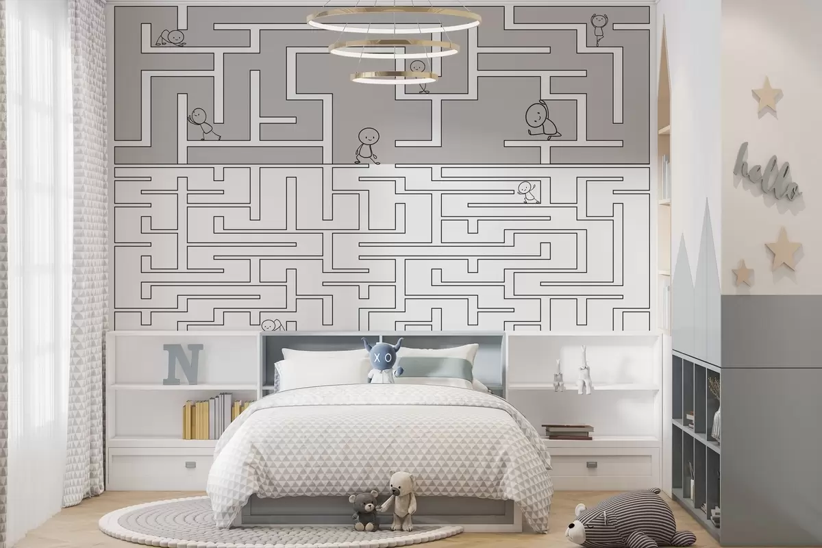 Stenske poslikave Labirint v svetlo sivi in beli barvi Št. w03873v5