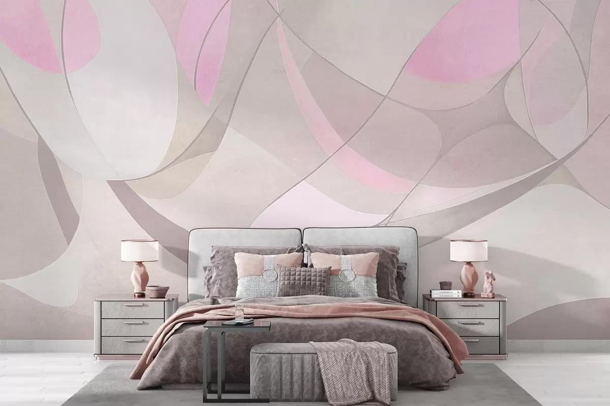 Stenske poslikave Geometrijska abstrakcija, umirjene rožnate in bež barve Št. w03878v1