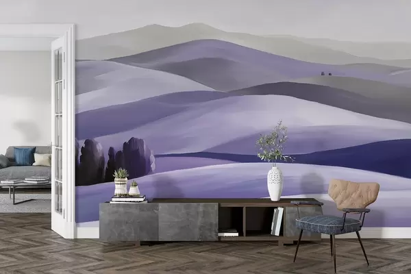 Stenske poslikave Pokrajine z drevesi, Toskana, vijolične barve, oljni slog Št. w03880v3