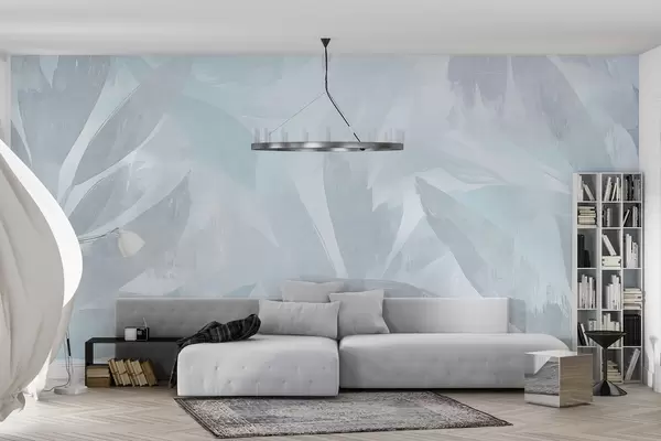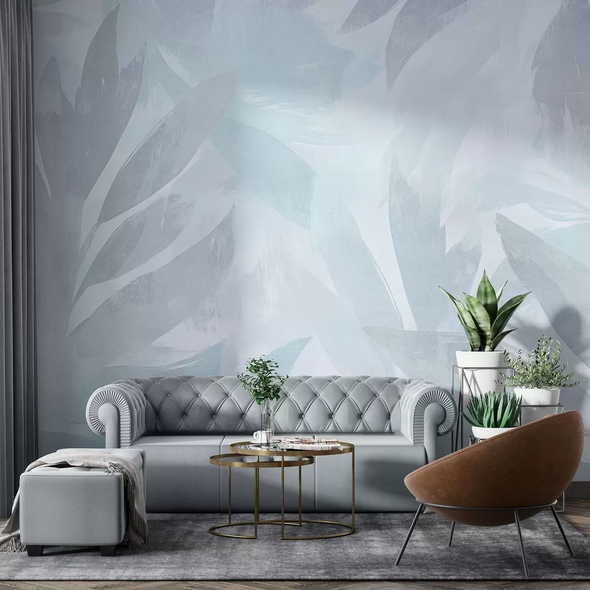 Stenske poslikave Tropski listi, cvetlični, palme, pastelni slog, modre barve Št. w03881v2
