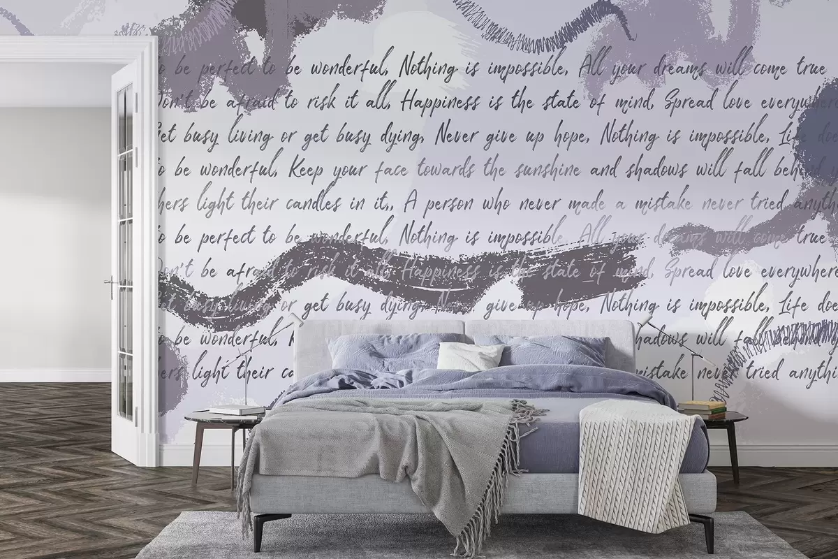 Stenske poslikave Oblikovanje z navdihujočimi citati, abstrakcija, vijolične barve Št. w03909v2