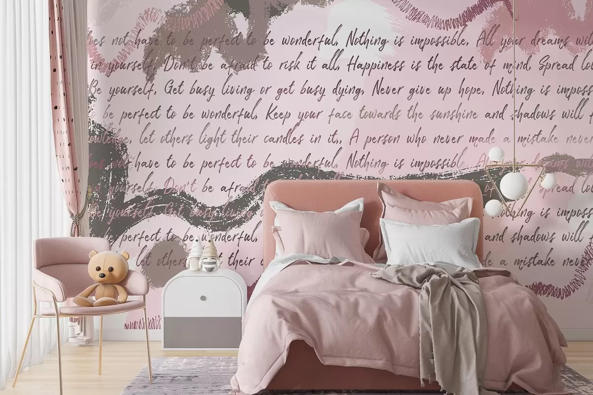 Stenske poslikave Oblikovanje z navdihujočimi citati, abstrakcija, roza barve Št. w03909v3