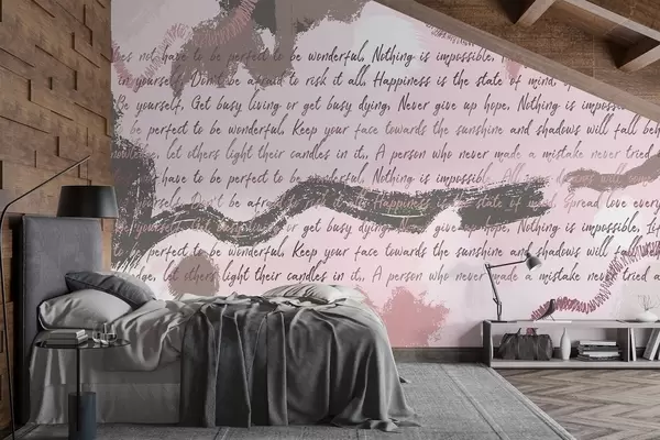 Stenske poslikave Oblikovanje z navdihujočimi citati, abstrakcija, roza barve Št. w03909v3