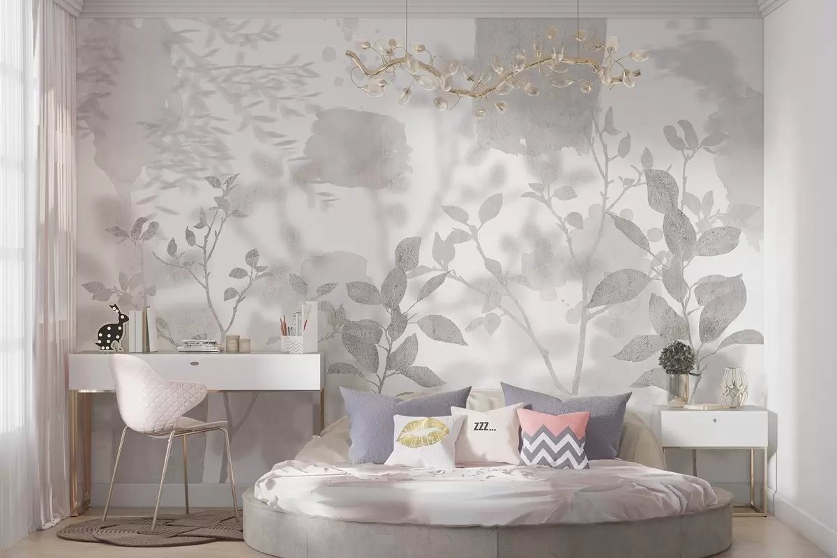 Stenske poslikave Silhuete dreves, veje, narava, akvarel, sive barve Št. w03911