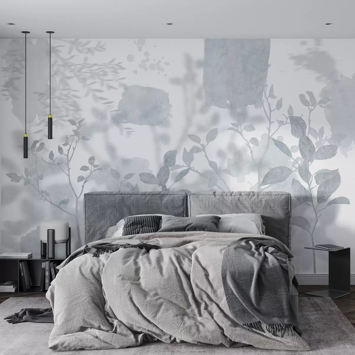 Stenske poslikave Silhuete dreves, veje, narava, akvarel, modre barve Št. w03911v2