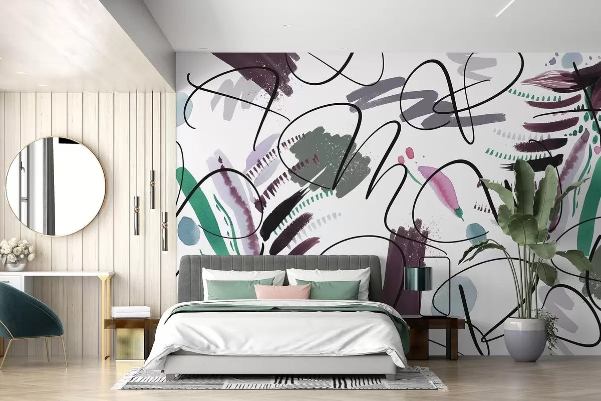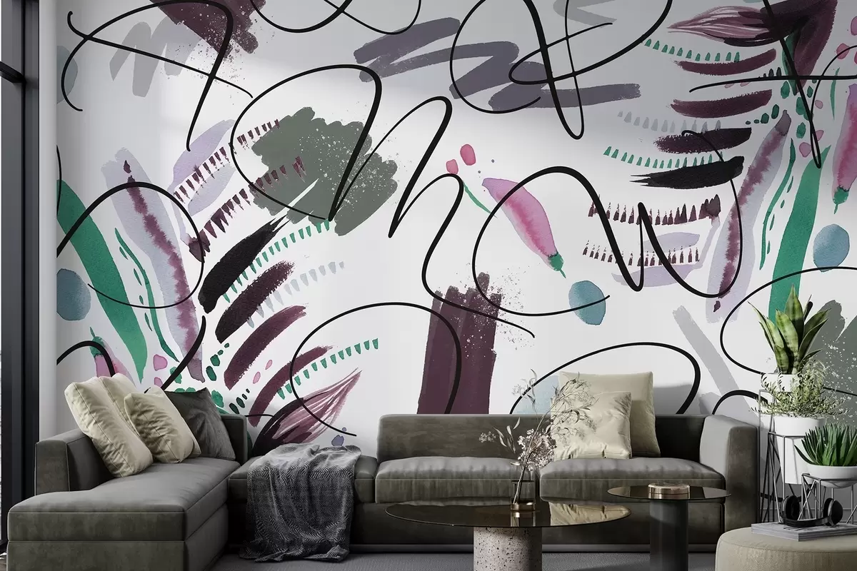 Stenske poslikave Črke s črnilom, kaligrafija, poteze čopiča, pastelne barve, abstrakcija Št. w03912v1