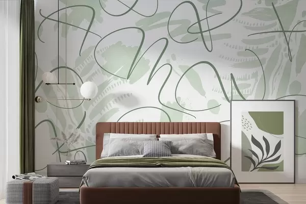 Stenske poslikave Kaligrafska abstrakcija s črkami, potezami čopiča, zeleno barvo Št. w03913v3
