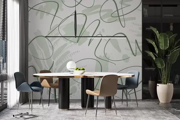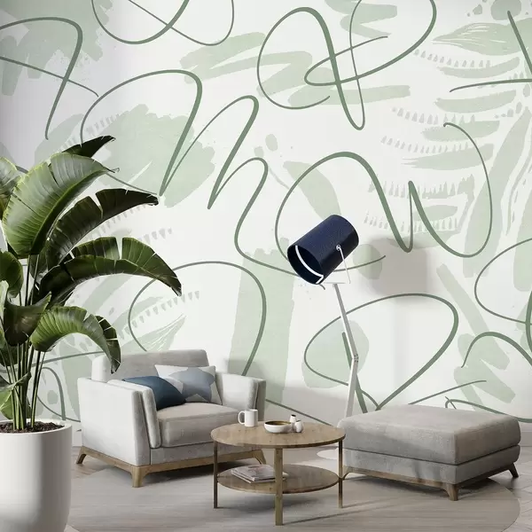 Stenske poslikave Kaligrafska abstrakcija s črkami, potezami čopiča, zeleno barvo Št. w03913v3