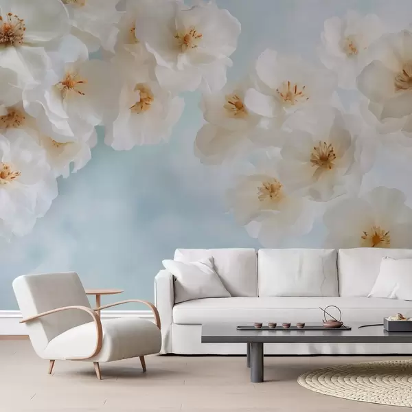Stenske poslikave Nežno veliko cvetje na svetlo modrem ozadju Št. w03931v1