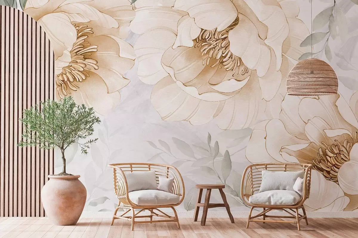 Stenske poslikave Imitacija rumenih pivonk akvarel Št. w03932v1