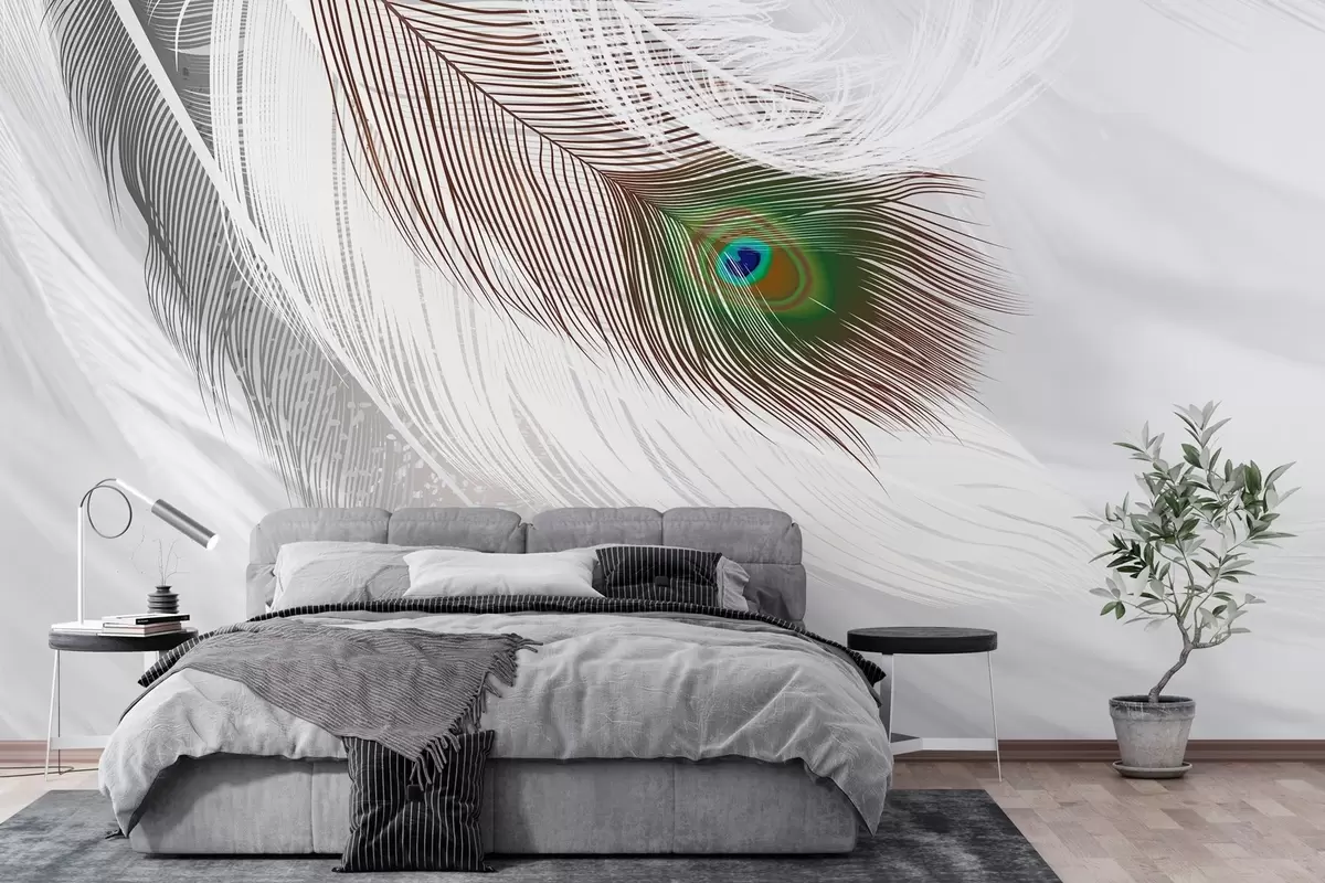 Stenske poslikave veliko pavje pero med peresi Št. w03961