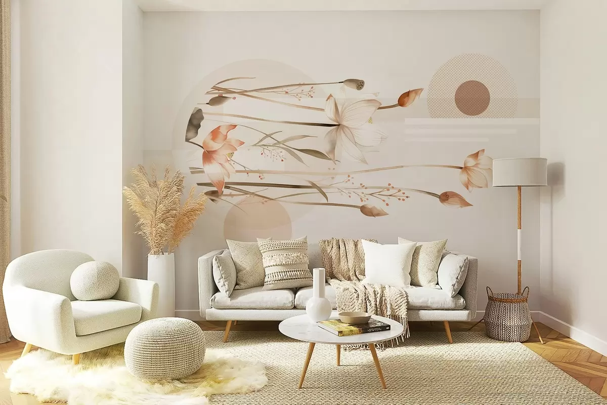 Stenske poslikave pastelne lilije in boho geometrija Št. w03964