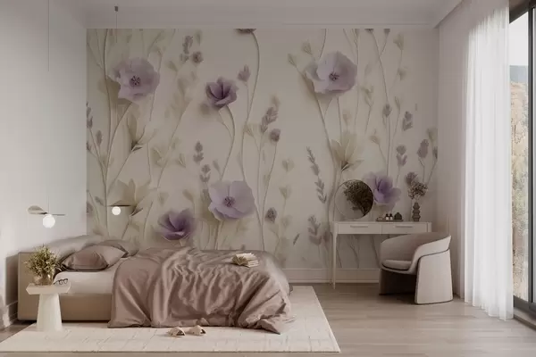 Stenske poslikave Nežno lila cvetje na smetanovem ozadju Št. w03993