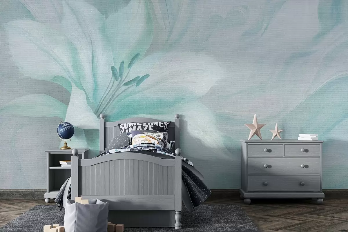 Stenske poslikave Lilija cvet tekočina abstrakcija, cvetlični, akvamarin barve Št. w04006v3