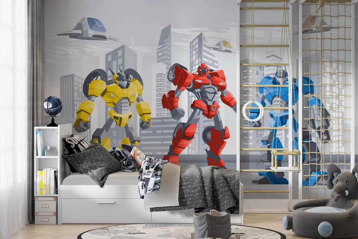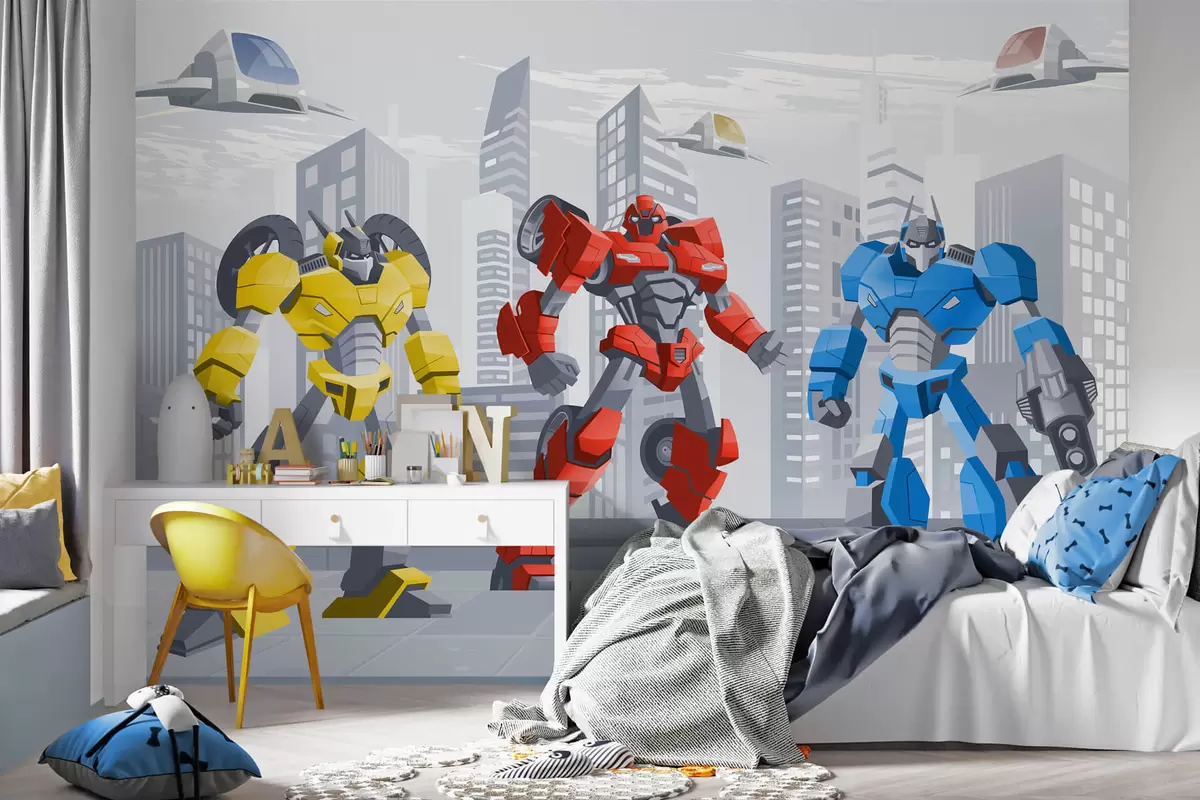 Stenske poslikave Roboti transformatorji na ozadju enobarvnega mesta Št. w04012