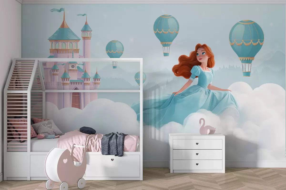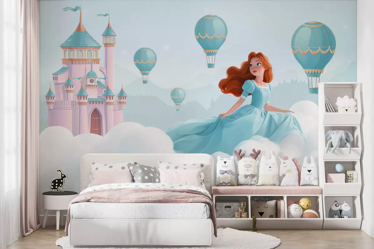 Stenske poslikave Princesa med oblaki v ozadju pokrajine z gradom Št. w04015