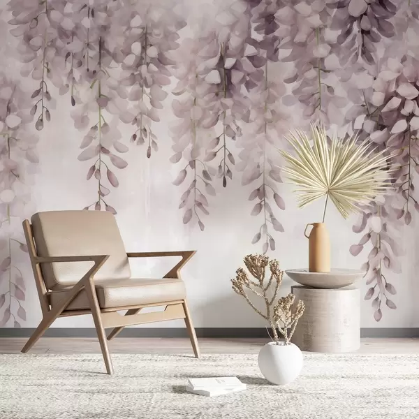 Stenske poslikave Mehak akvarelni prizor v kremno rožnatih tonih s kaskadnimi grozdi glicinije, ki tvorijo sanjsko cvetlično zaveso Št. w04034v2