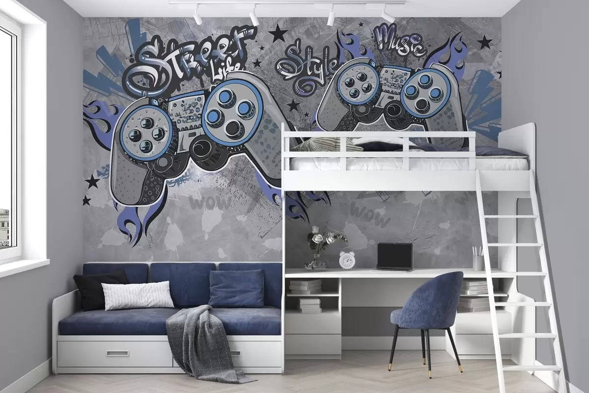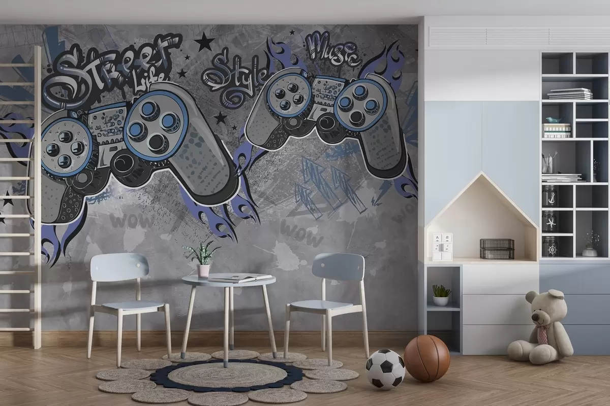 Stenske poslikave Konzole v slogu ulične umetnosti na grunge steni Št. w04054