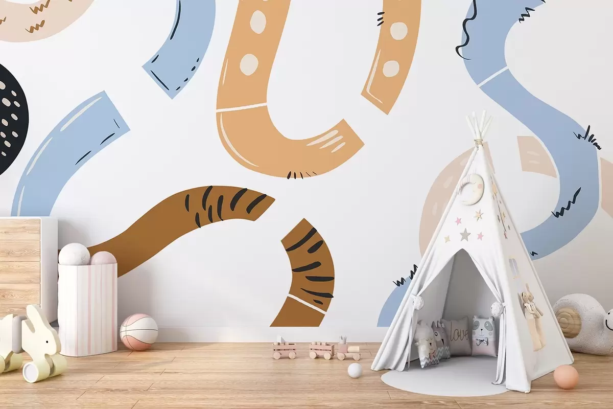 Stenske poslikave Abstraktne risbe, mladostnik, čmrlji, rjava, modra, rožnata Št. w04066