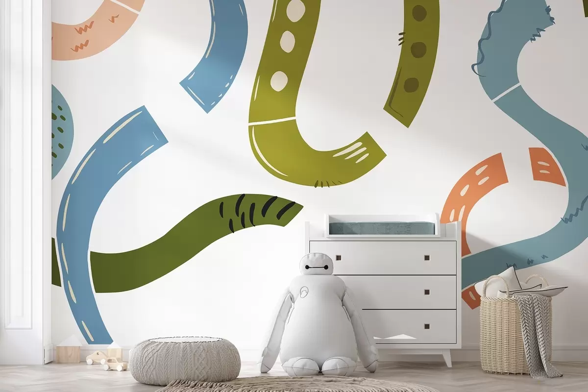 Stenske poslikave Abstraktne risbe, mladostnik, čmrlji, zelena, modra, roza Št. w04066v2