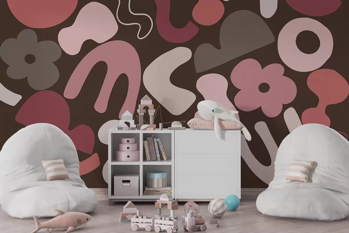 Stenske poslikave Geometrijske figure, mladostnik, abstrakcija, temno bordo ozadje Št. w04067