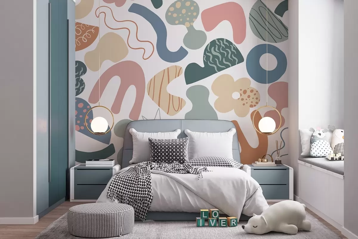 Stenske poslikave Geometrijske figure z risanjem črtal, mladostniške, zelene, rožnate, modre Št. w04068v2
