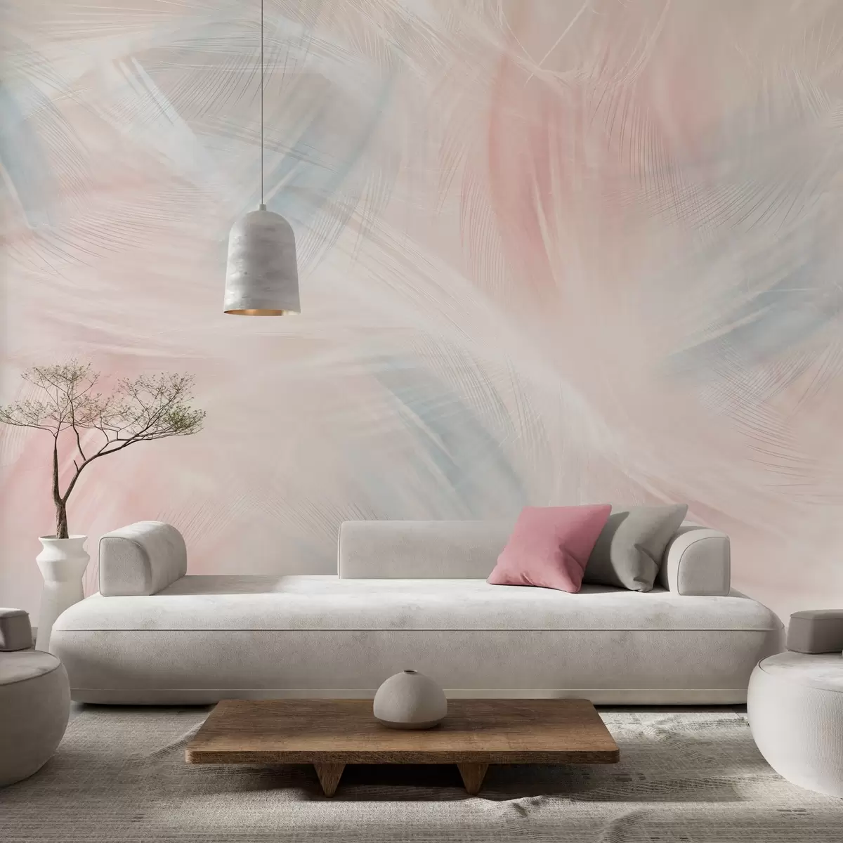 Stenske poslikave zračno perje v rožnatih in modrih odtenkih Št. w04071