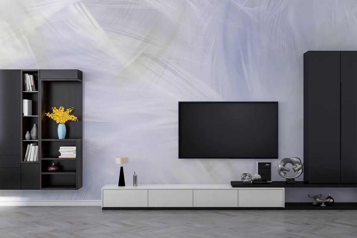 Stenske poslikave zračno perje v bež in modrih odtenkih Št. w04071v1