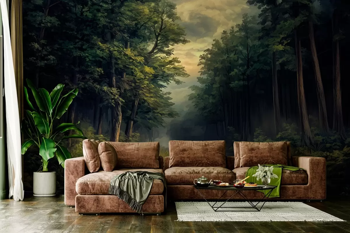 Stenske poslikave Gozd z jelenom in reko v slogu nizozemske oljne slike Št. w04072