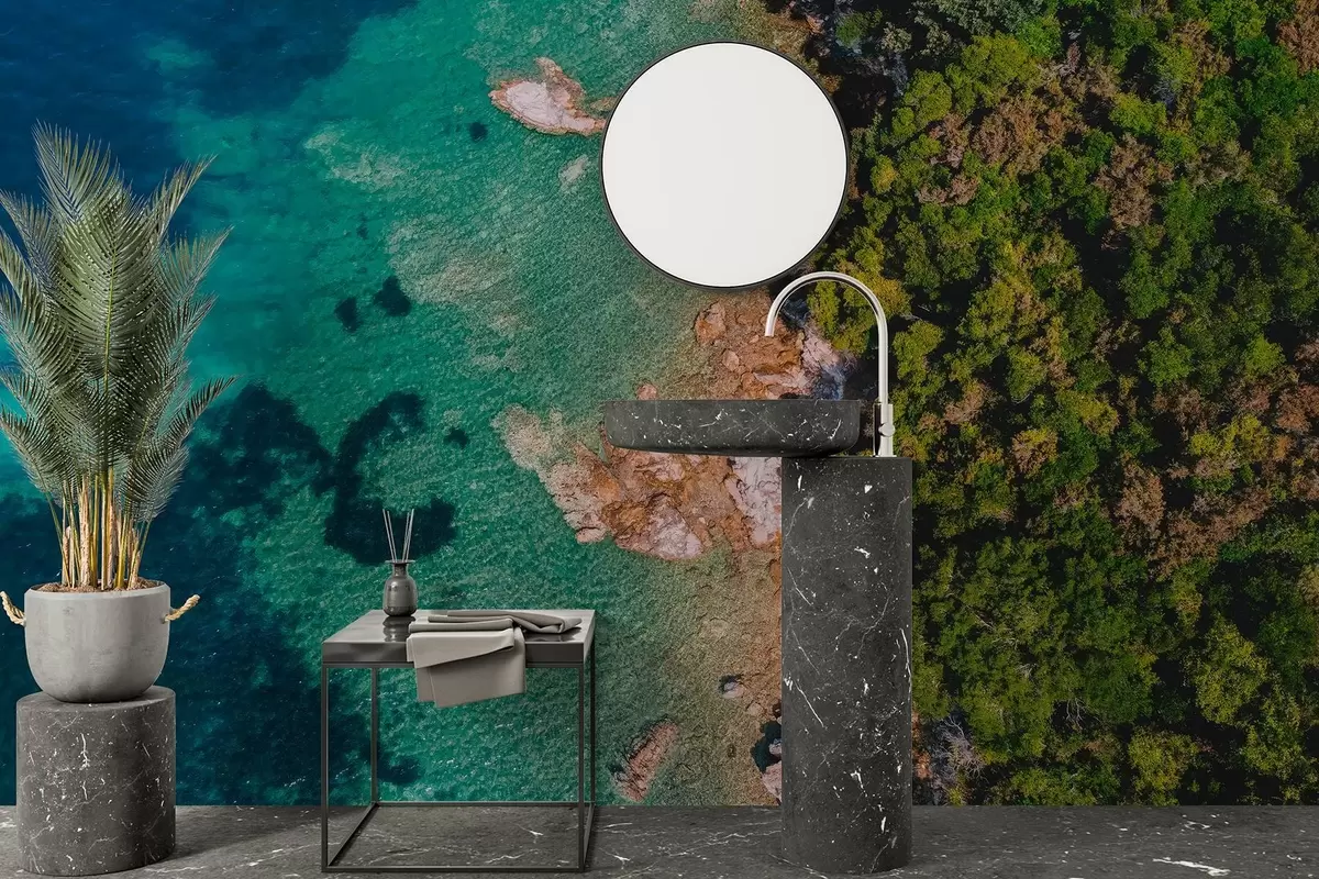 Stenske poslikave Španska morska obala z akvamarinsko vodo, borov gozd, zračna fotografija Št. w04099