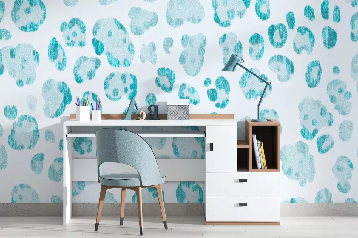 Stenske poslikave Leopardji potisk, volnena tekstura, modra barva Št. w04112