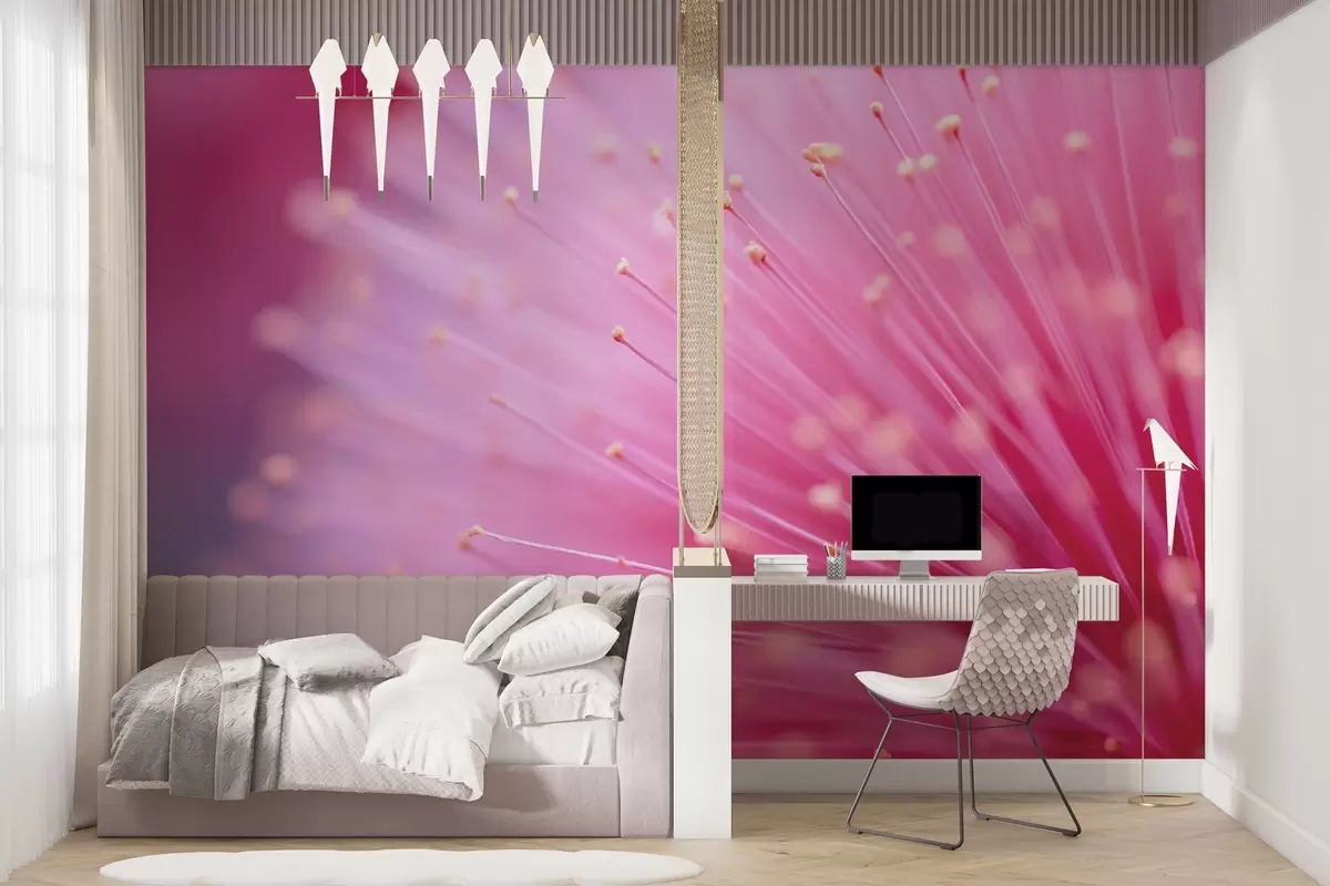 Stenske poslikave Rožnati cvetni peclji v makro tehniki, občutljiva abstrakcija Št. w04154