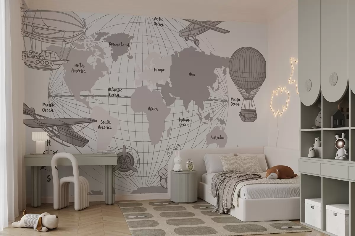 Stenske poslikave Zemljevid sveta z letali Št. w04177