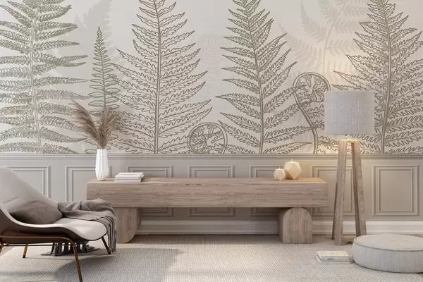 Stenske poslikave listi, rastline, praproti, svetloba, botanični, grafični Št. w04239v2