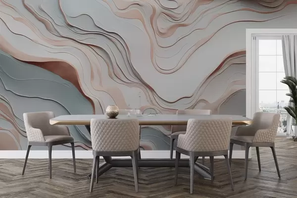 Stenske poslikave plasti, valovi, abstrakcija, rožnata, siva, mehke oblike, Št. w04255v1