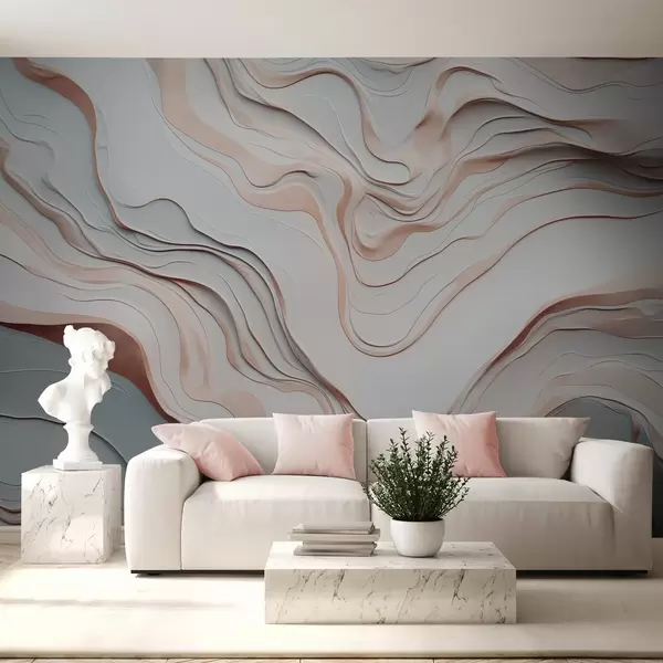 Stenske poslikave plasti, valovi, abstrakcija, rožnata, siva, mehke oblike, Št. w04255v1