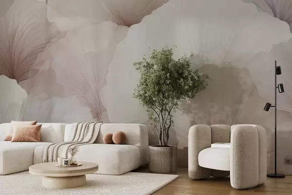 Stenske poslikave cvetje, cvetovi, cvetni listi, smetana, siva, mehkoba, mir Št. w04256v1