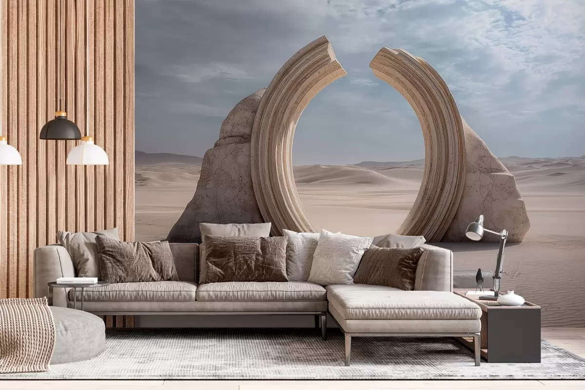 Stenske poslikave nadrealistična puščavska pokrajina z velikim arhitekturnim lokom Št. w04284