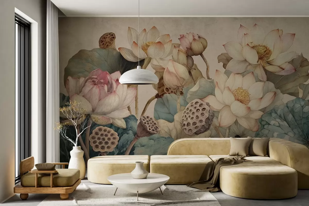 Stenske poslikave vodne lilije z veliko teksturo Št. w04309