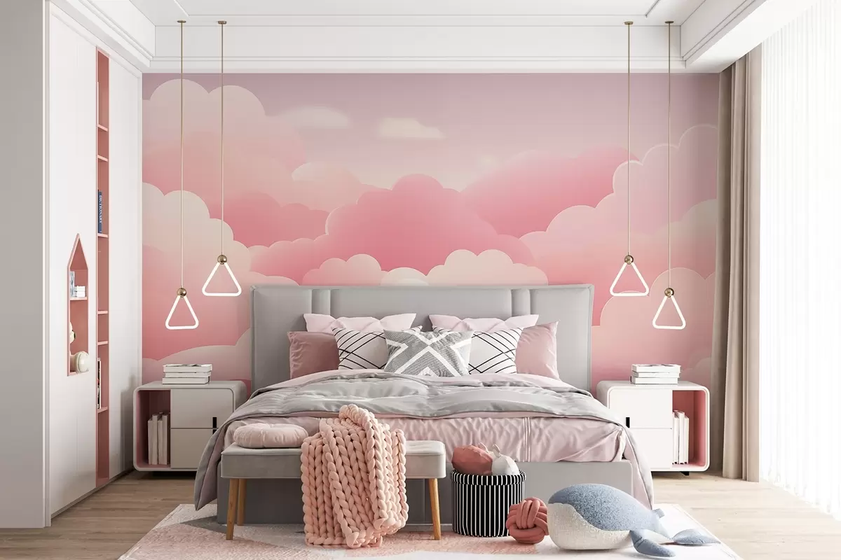 Stenske poslikave Oblaki v minimalističnem slogu Št. w04334v1