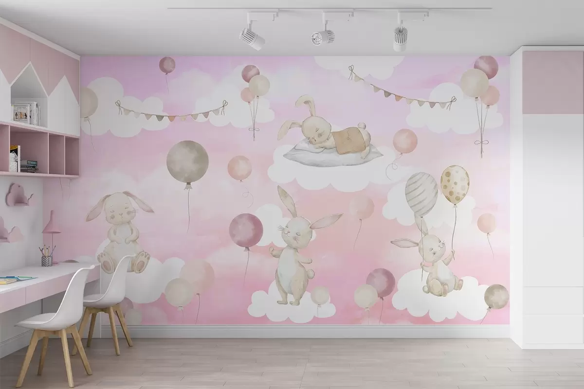 Stenske poslikave Zajci z baloni na oblakih Št. w04337v1
