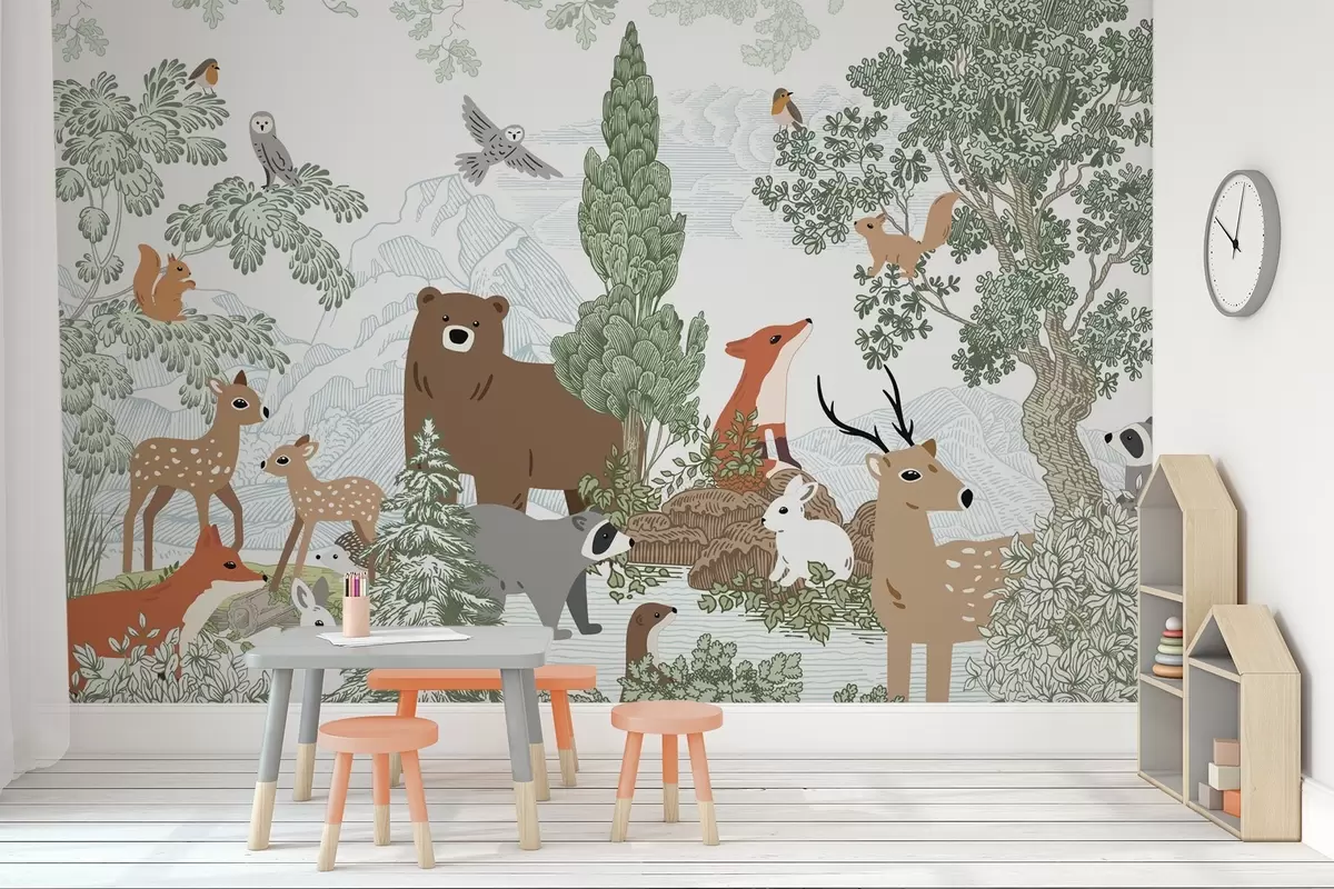Stenske poslikave Živali in ptice v gozdu Št. w04383