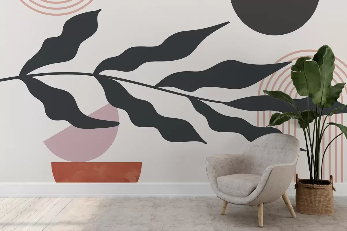 Stenske poslikave Abstrakcija, listi, linearni loki Št. w04386v2