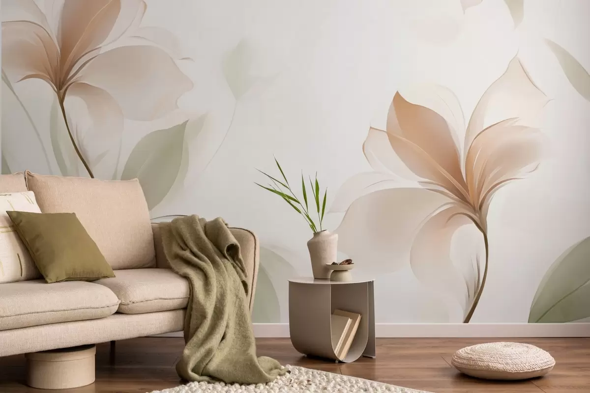 Stenske poslikave Prozorne rože v toplih bež in rožnatih odtenkih Št. w04397