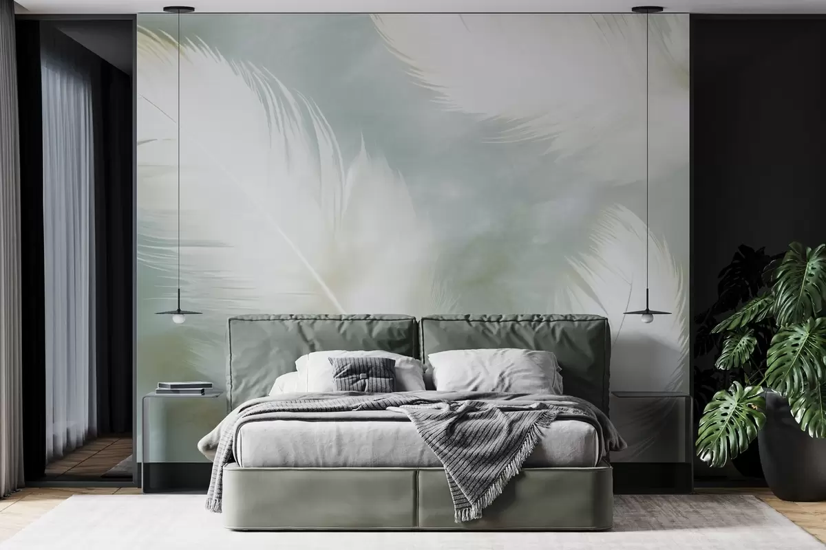 Stenske poslikave Nežno belo perje na mehkem metinem ozadju Št. w04399