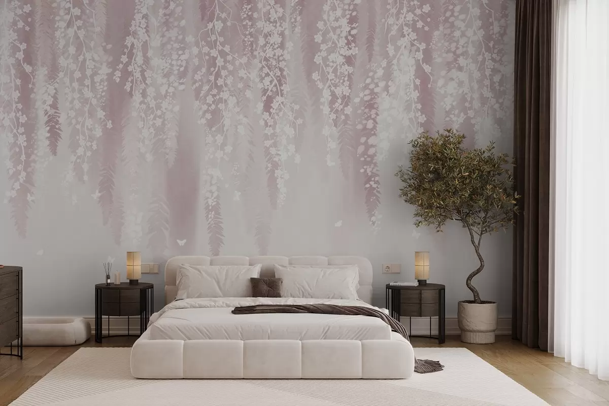 Stenske poslikave Roza različica vej z belimi cvetovi Št. w04417v1