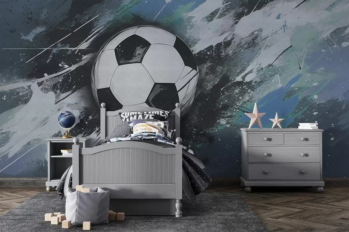 Stenske poslikave Nogometna žoga z zamegljenim grafitom v ozadju Št. w04467v1