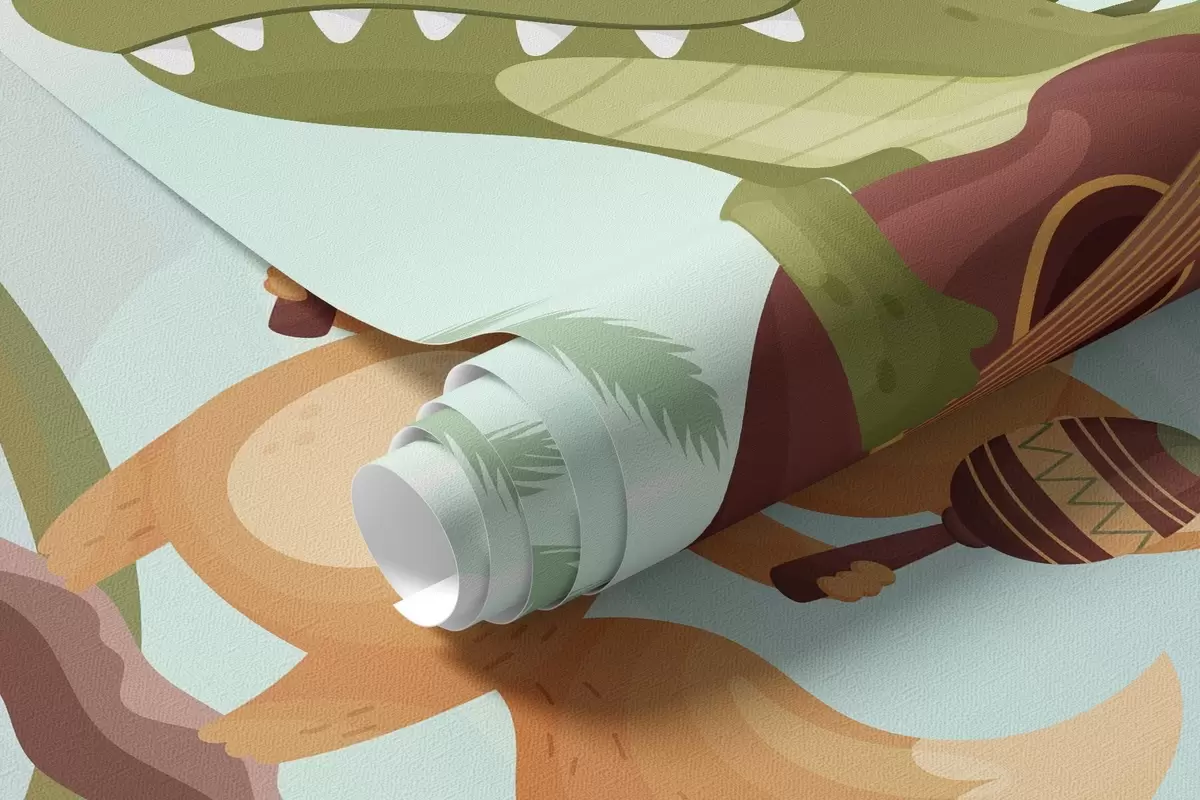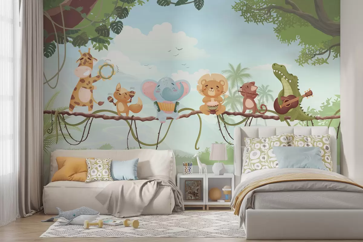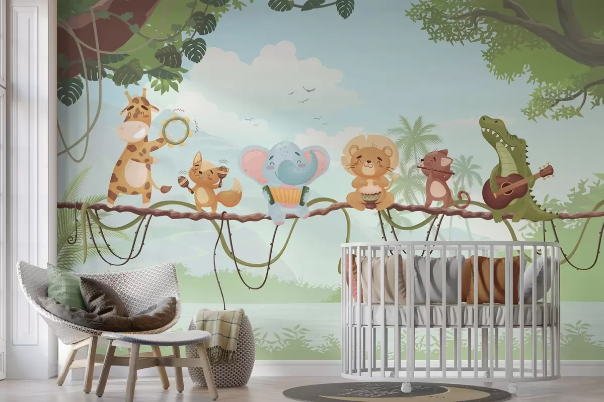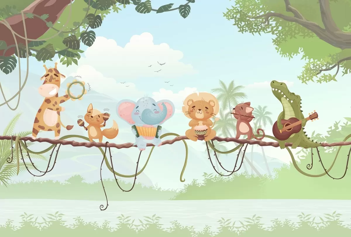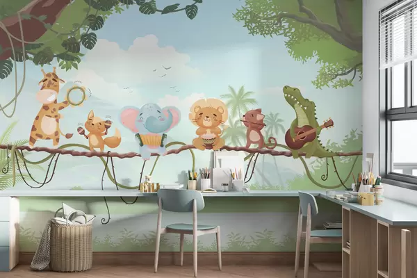 Stenske poslikave Živali z glasbenimi instrumenti pred tropskim ozadjem Št. w04505