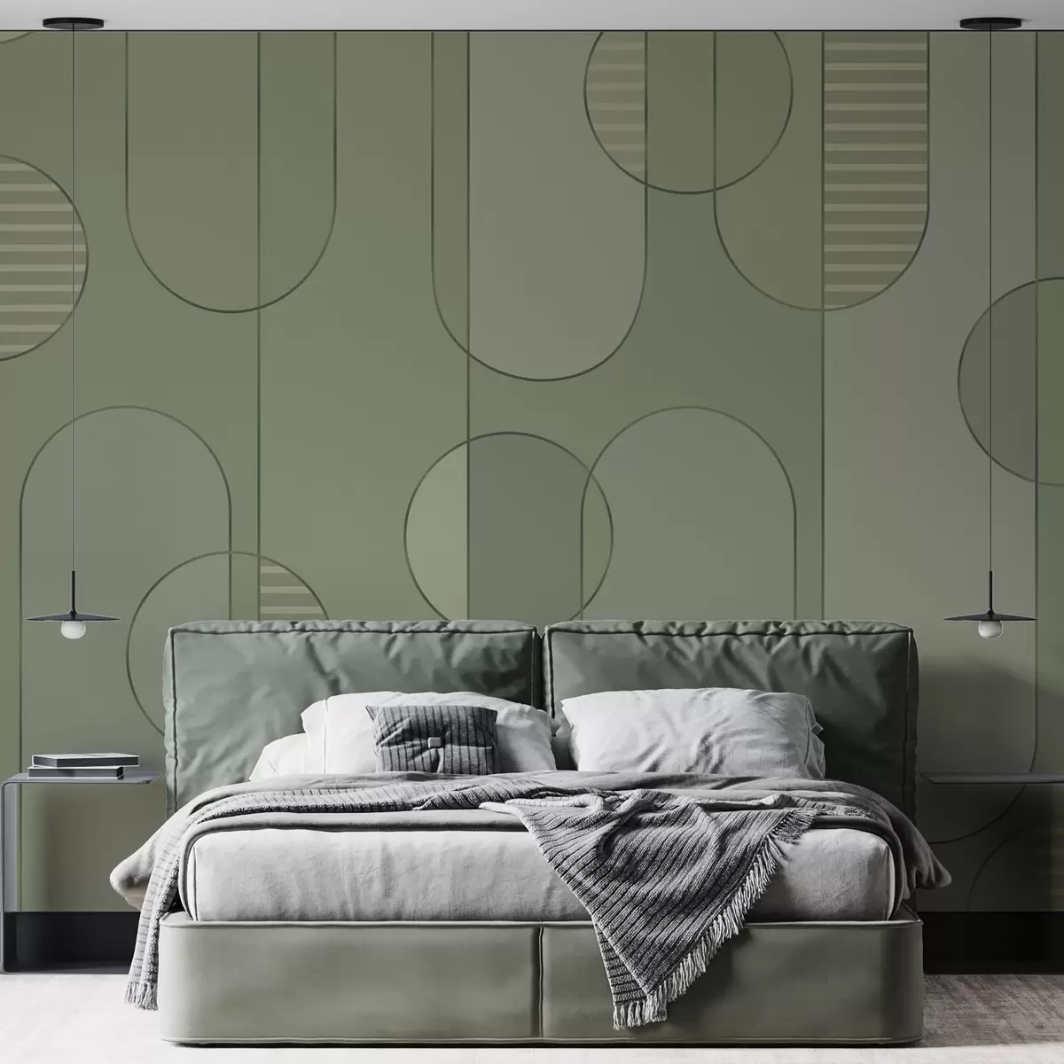 Stenske poslikave Geometrična abstrakcija s svetlo zeleno paleto Št. w04523v1