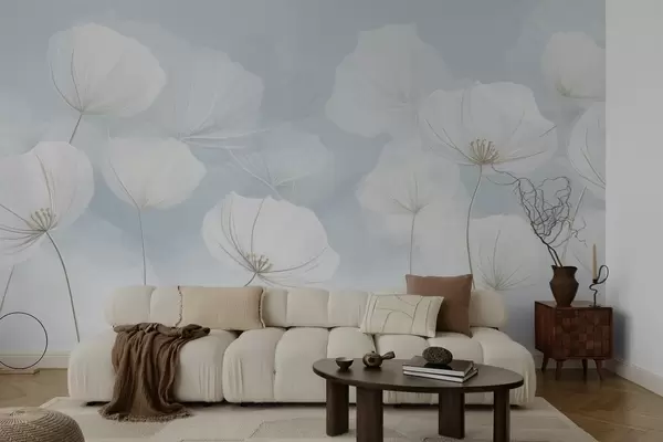 Stenske poslikave Zračni beli cvetovi na modrem ozadju Št. w04580